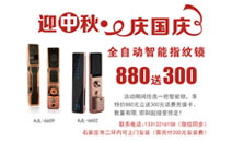 迎中秋慶國慶智能鎖促銷活動(dòng),活動(dòng)期間任選一把智能鎖(AJL-6602、AJL-6609),享特價(jià)880元立送300元話費(fèi)充值卡。... More>>