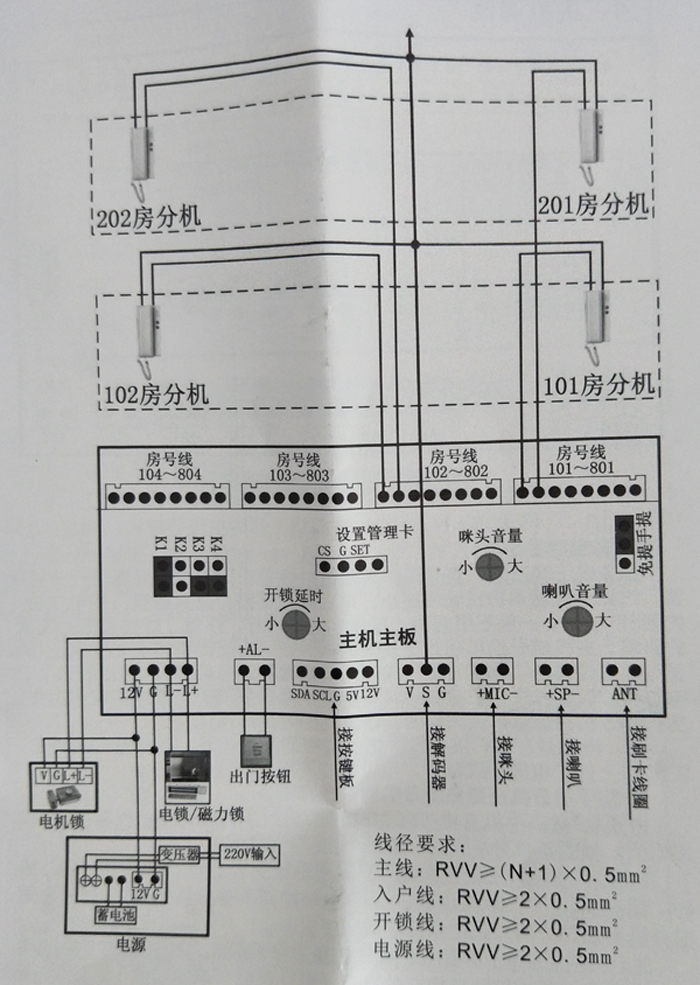 3)系統(tǒng)接好線即可使用,主機和分機無須編碼;