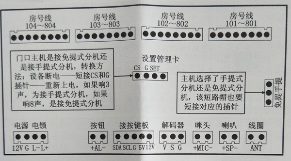 注2:主機要么全接手提分機,要么全接免提分機,不能部分接手提分機,部分接免提分機的。