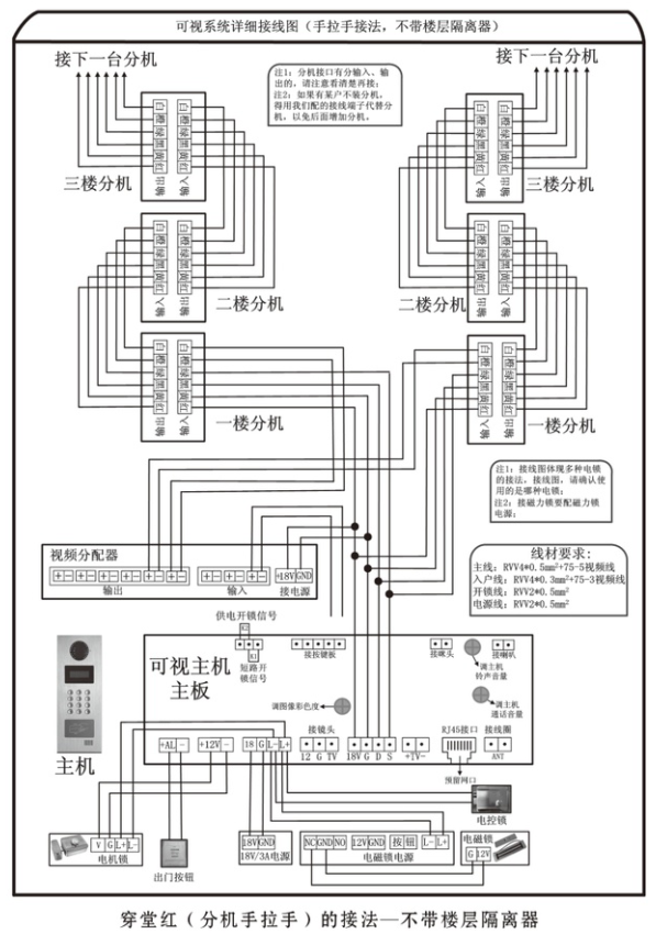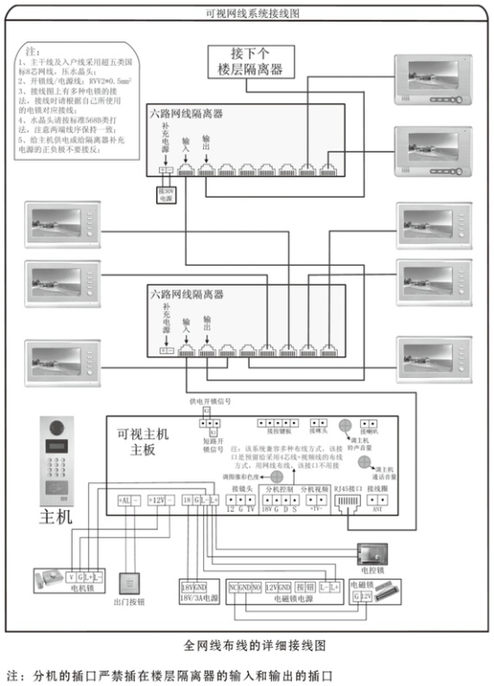 5、分機(jī)不能對(duì)講:檢查分機(jī)喇叭和各端口的連線是否正確;