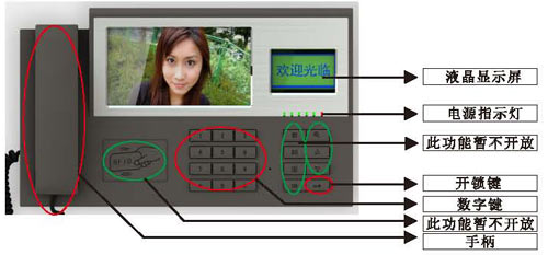 室內分機功能強大、對講、開鎖、監(jiān)視、選曲。