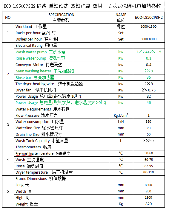 長龍式洗碗機 ECO-L850CP3H2